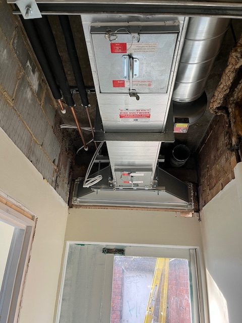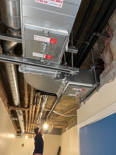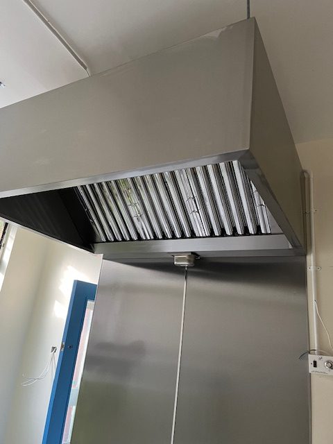 The canopy was placed in a school kitchen where school dinners are prepared for students and staff. Due to the amount of food that is cooked in the kitchen the extraction had to be safely installed by our fitters and all ducting needed to go through the roof area and outside, removing all odours from the air.