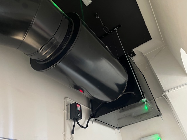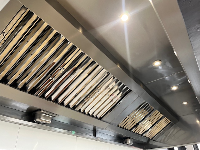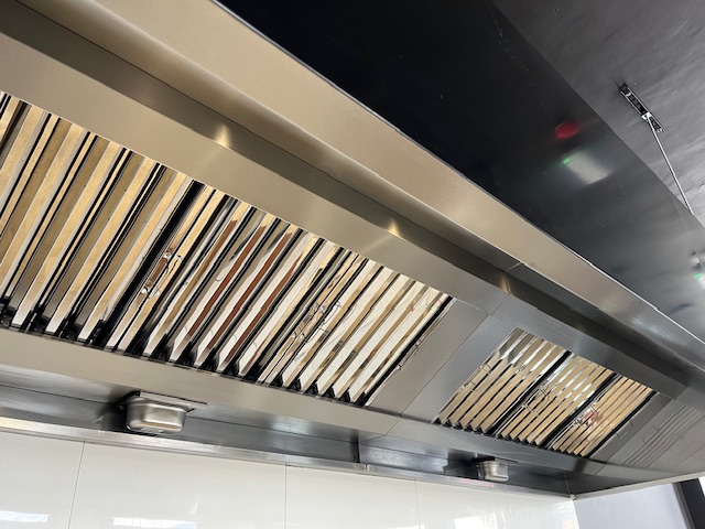 The canopy itself was powder coated in black to help it blend in with the black ceiling. The canopy itself, although smaller than some of our most recent canopies also comes fitted with stainless steel baffle filters running the full lengths of the filter bank to maximus the filter face velocity.