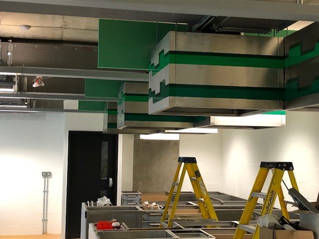Canopy Uk installed 14 canopies into a food tech room at Westminster Academy London. We decided to take it upon ourselves to suggest and show that we were not just a canopy company by designing and adding graphics to the sides of the hoods, the inspiration was taken from the outside of the academy.